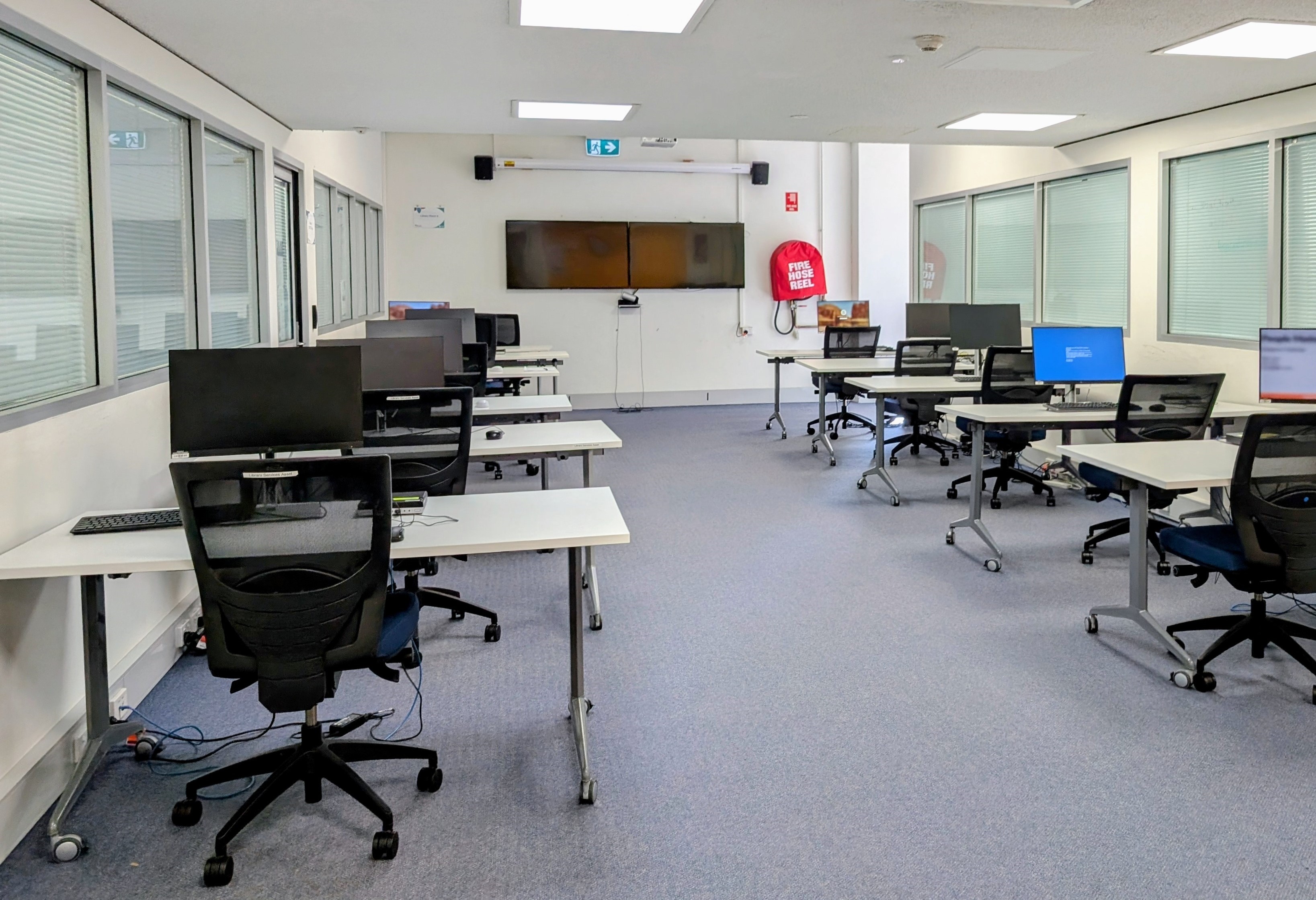 The room also includes a networked laptop (for the presenter), and a Cisco video conferencing unit. There is an option to use an overhead projector and large screen, a whiteboard and a hearing aid induction loop if required. PLEASE NOTE: This room is not suitable for confidential meetings. Access to other training rooms is through this room so there may be people coming and going through the space. Book now >> |